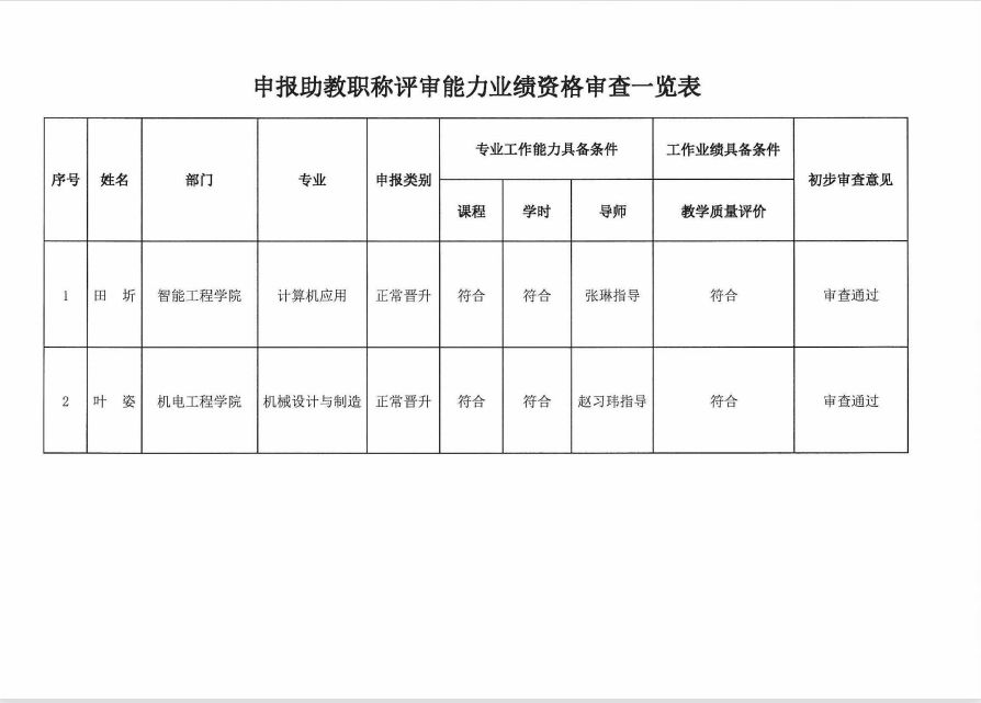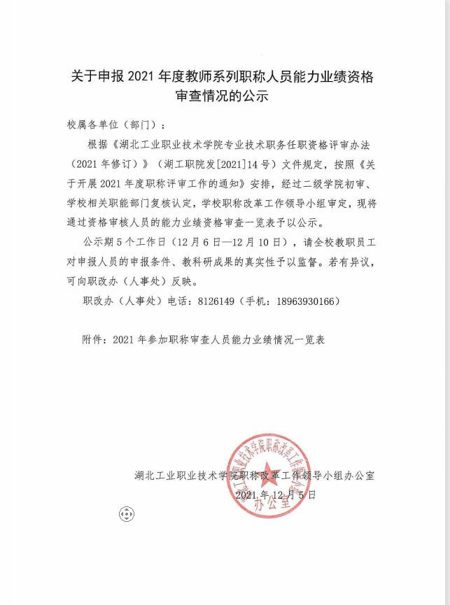 关于申报2021年度教师系列职称人员能力业绩资格审查情况的公示