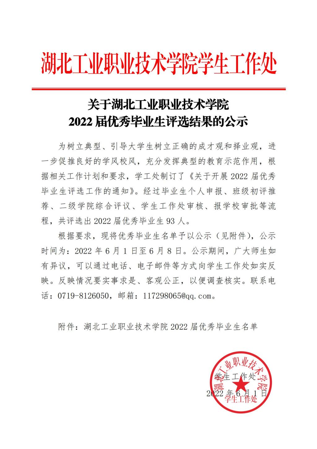 关于九州官方网站2022 届优秀毕业生评选结果的公示