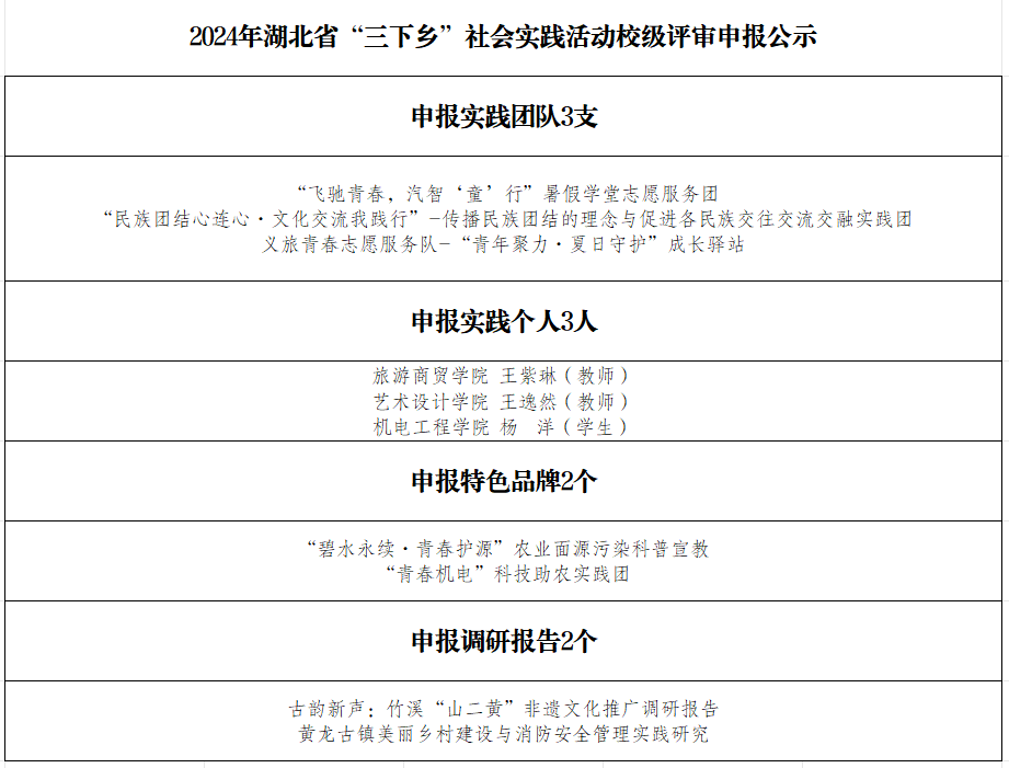 关于2024年湖北省“三下乡”社会实践活动申报校级评审结果的公示