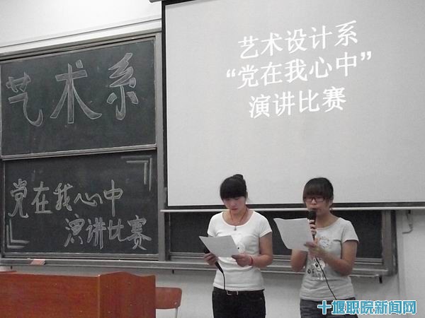 艺术设计系也于517日晚4201教室举行了以“党在我心中”为主题的演讲比赛。二十位选手参加了此次比赛。该系党总支书记计有勤、辅导员李景菊、院朗诵协会主席李扬、系08级学生党员刘雪和黄文等担任了本次比赛的评委。