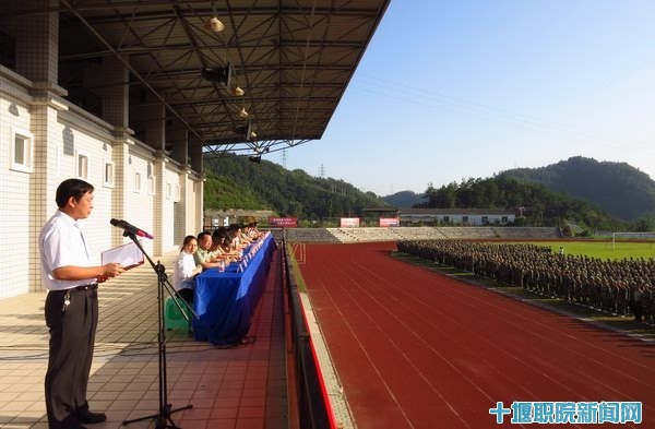 新闻网讯(文/曾刚 图/壮戈)一年一度秋风爽,又是丹桂飘香时,9月4日上午,我院2012级新生开学典礼暨军训动员大会在北区运动场隆重举行。来自全国各地的新生怀揣着梦想,在风景如画的十堰职院正式开始了大学生活,与此同时,为期15天的军训生活也拉开帷幕。