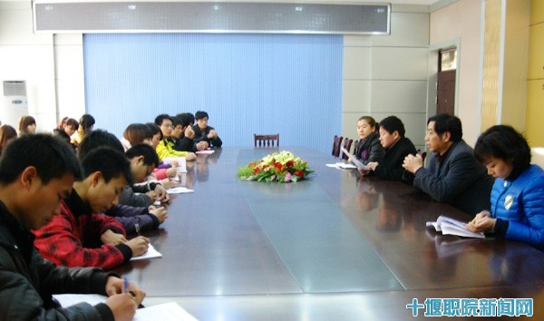 3月22日中午,我院参加全省县域经济工作会议的38名志愿者齐聚行政中心102会议室,进行集体宣誓。副院长唐大超、院长助理、学工处长肖海华以及团委负责人参加会议并向同学们寄予殷切希望。