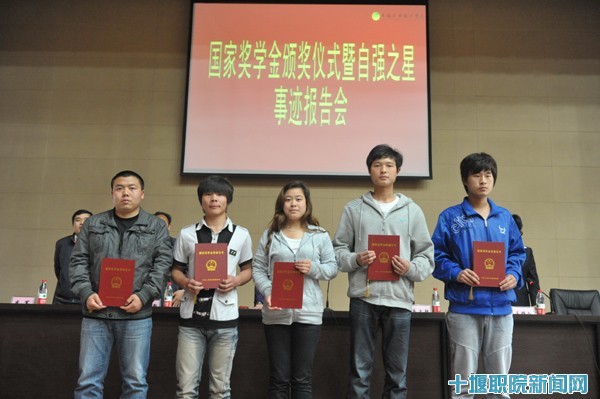 经国家教育部、财政部联合成立的国家奖学金评审领导小组的评审确定,我院机电工程系2008642班耿国芬、电子工程系2008912班曹金朋、汽车工程系20093306班杜邦、经济贸易系2008841班沈友闯、建筑工程系2008471班许磊5名同学获得20092010学年度国家奖学金,每人奖励现金8000元。