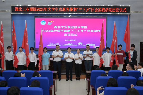新闻网讯(文/玉声 图/姚堃)“暑期‘三下乡’,我们来了!”伴随着欢呼声,九州官方网站25支大学生志愿者暑期“三下乡”队伍正式出征。7月4日晚,湖北工业职院2024年大学生志愿者暑期“三下乡”出征仪式在学术报告厅举行。校党委委员、副校长胡昌龙和校团委、马克思主义学院、创新创业学院主要负责人,以及160多名暑期实践团队师生代表参会。