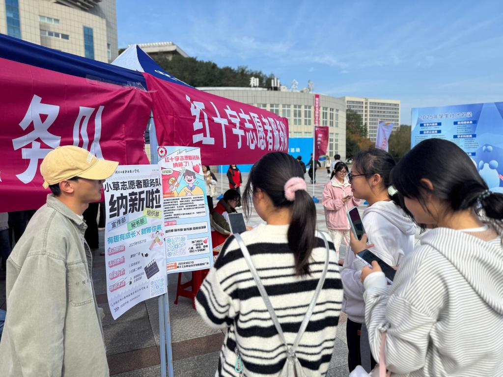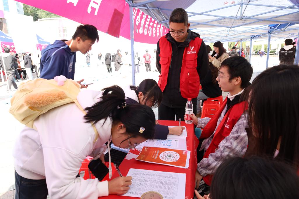 新闻网讯(文/郑丽琼 /杨学全 张士于)悦己青春,越己社团。1026日,由校团委主办,校青协、校学生会社团管理部承办的2025年学生社团集中宣传纳新活动在慧智广场举行。全校七个类别62个社团齐聚一堂,通过丰富多彩的展示形式,吸引了众多2025级新生驻足咨询、踊跃报名,同学们满怀热情地穿梭于各个展位之间,积极寻找着心仪的社团。这场热闹的“青春之约”,不仅是新生探索兴趣航向、锤炼综合能力的新起点,更为秋日校园注入了蓬勃的青春活力。