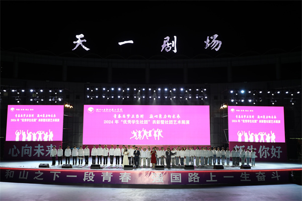 新闻网讯(文/郑丽琼 图/张鑫 赵太银 方家棱 张逍杰 姚堃)为进一步发挥学生社团组织育人功能,丰富我校青年学生校园文化生活,向广大师生展现社团风采,9月9日晚,我校“青春逐梦正当时 凝心聚力向未来”2024年“优秀学生社团”表彰暨社团艺术展演活动在天一剧场举行,学工处、宣传部、团委、各二级学院、心理健康教育中心等部门负责人与近万名师生共同观看演出。
